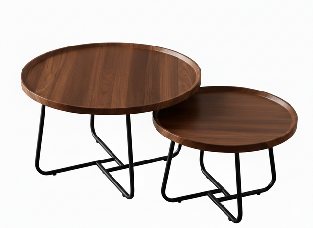 Wooden Twin Nested Round Coffee Table Set