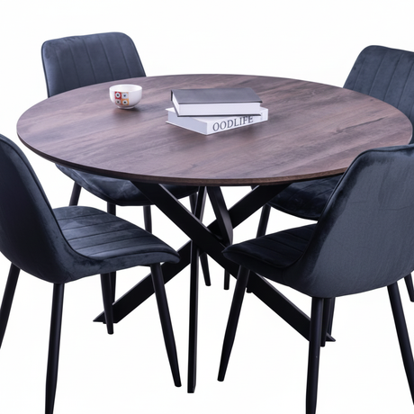 'Clive' 1.2m Round Dining Table + Upton Black Velvet Dining Chair*4 Set