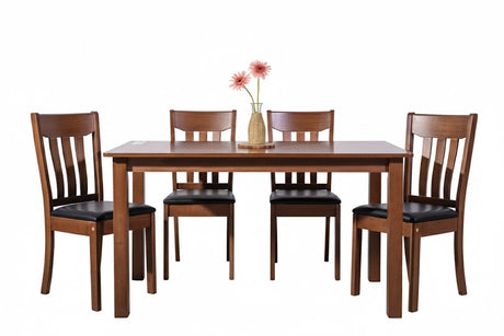 Jinbi Table + Astor Chair*4 Rubber Wood Dining Set Walnut
