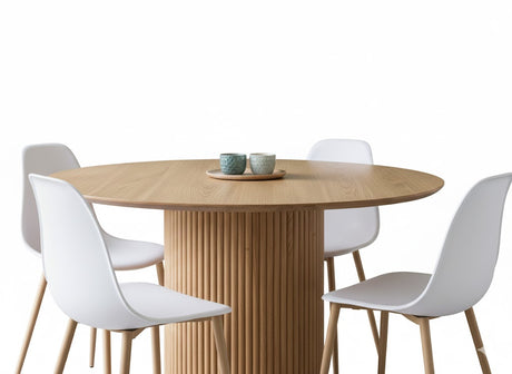 Kalahari Round Dining Table + Alpine Dining Chair [White with Wooden Legs]*4 Set