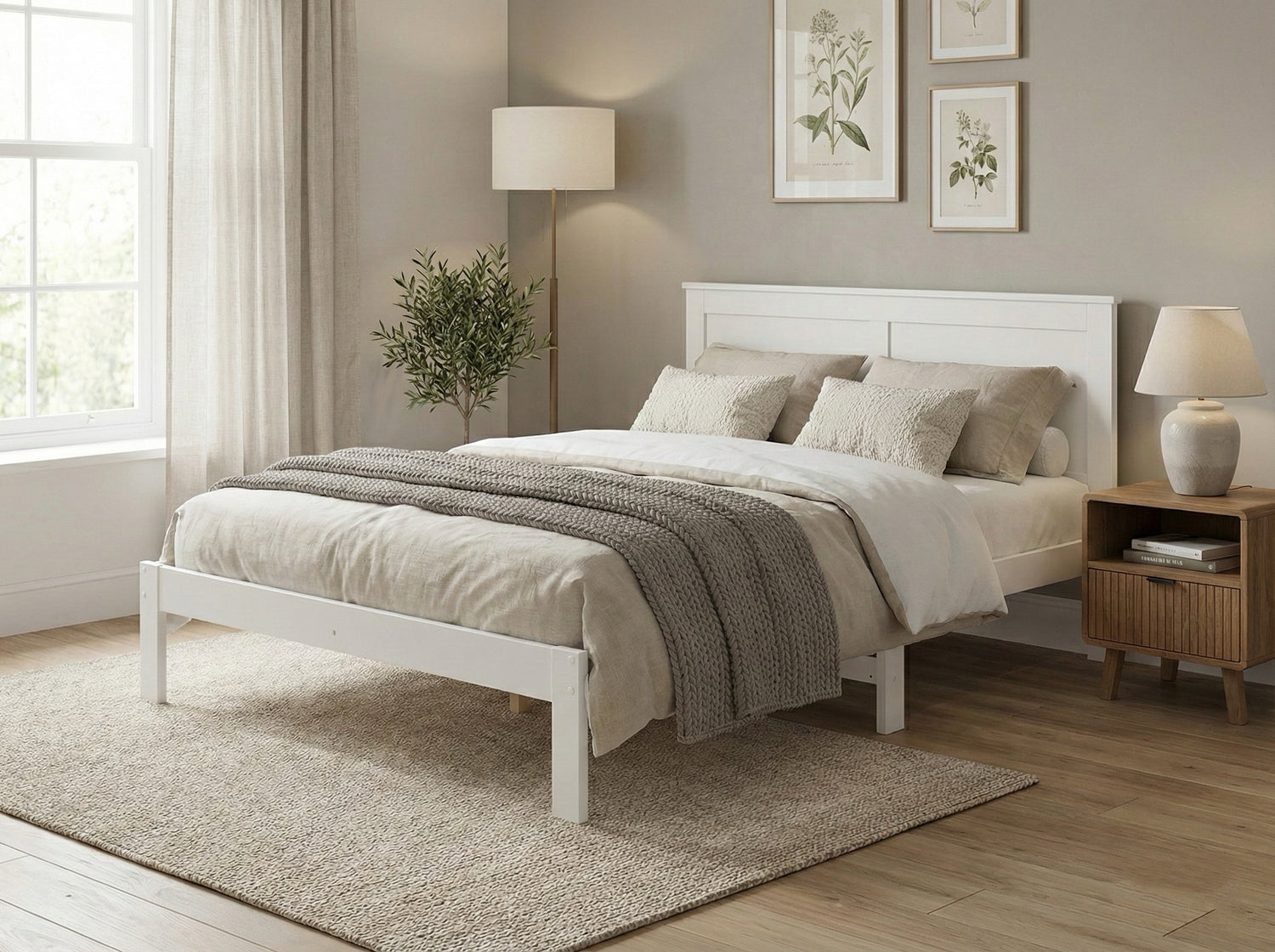 'Metro' Solid Pine Bed Frame White Queen